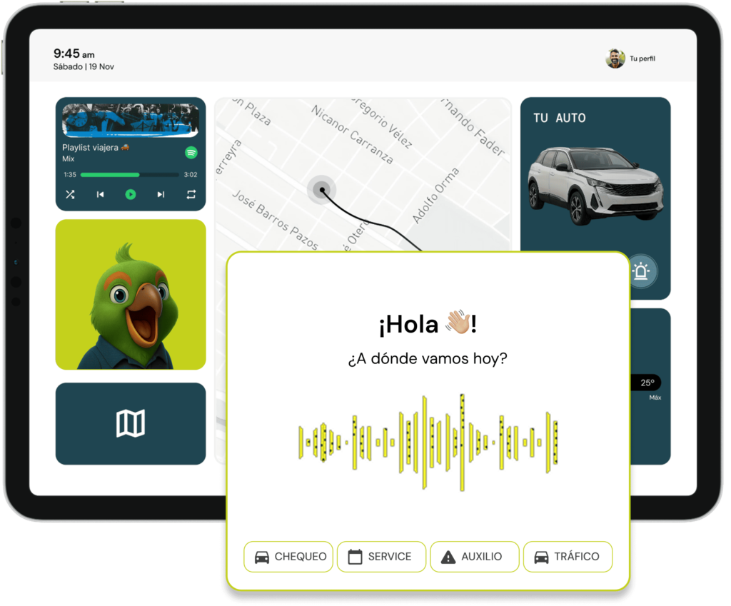Toda la tecnología de un GPS, pero con la inteligencia de un copiloto que te acompaña, cuida tu vehículo y te da tranquilidad 24/7.